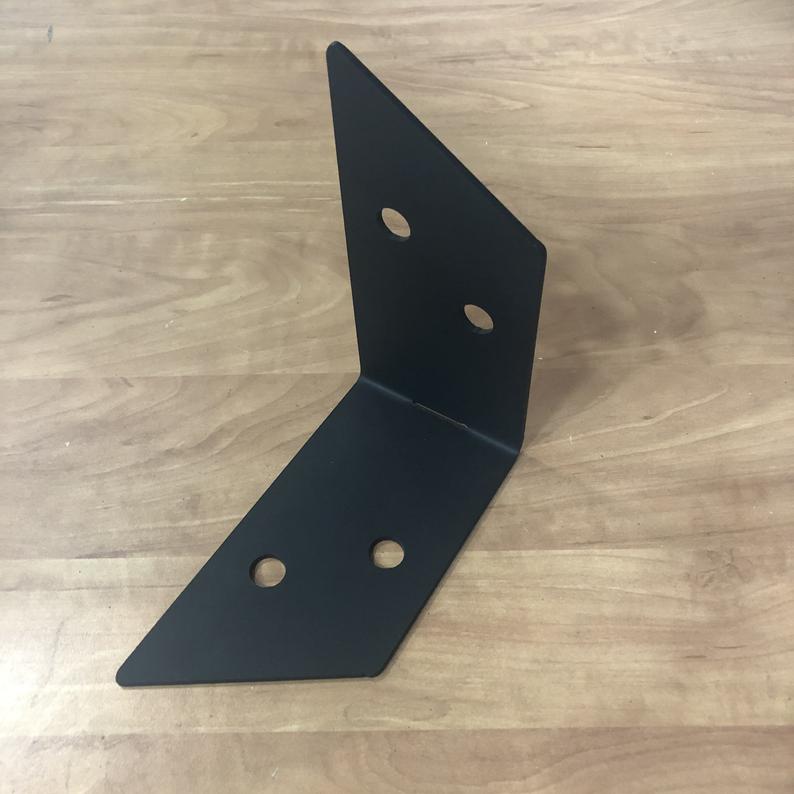 We make our brackets using 1/8″ thick steel – a single corner bracket for a 4×4 post weighs over 2 pounds – – strong enough to take what you throw at it (or what you throw it at!), but not so heavy where they are hard to work with.
