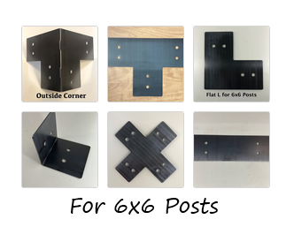 - Legless T™ – This bracket is the same dimensions & placement of bolt holes as the “T” – just without the bottom “leg” of the “T”! It measures 5.5″ x 16.5″ for a 6×6 post, and 3.5″ x 10.25″ for a 4×4 Post.